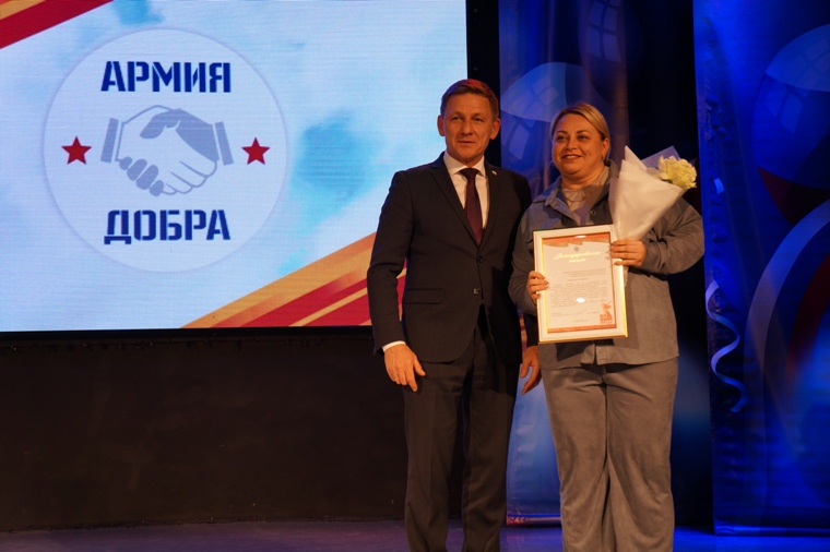 – А она в малом: в отправленной конфетке, в связанных бабушкой носках, в новогодних елках, в которых столько теплоты родной земли. И сейчас «Армия добра» – это мост между тылом, который работает здесь, и нашими ребятами, которые воюют и защищают нашу Родину. И «Армия добра» с каждым днем становится крепче. Оглядываясь назад, я не вспоминаю трудности, а вижу лица родных людей: водителя, который едет с грузом на Донбасс; наших рукодельниц, которые плетут сети; наших координаторов и дежурных в штабе; ребят, которые помогают грузить грузы.