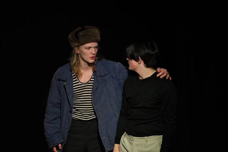 Как ребята вживались в свои роли? «Мы искали и находили образы во временной эпохе. У каждого из наших персонажей есть какое-то прошлое. И оно тянется на протяжении всей пьесы. И есть цель. У Кеши больная тема, что его бросили. Он хочет найти нового друга и потом его находит. А у Гусятникова есть внучка, которую он бросить не может и которую ревнует. Они сроднились, стали семьей, когда жили в этом амбаре; а когда все это потеряли, отправились на поиски лучшей жизни, которую знают по книжкам. Цель Вити: найти своего любимого хозяина. Поначалу он настороженно относится к Кеше, Гусятникову и Кате. А когда они погибают ради него, понимает, что это и сесть настоящая дружба, – рассказали Александр Симаков (пес Кеша), Илья Золотарев (Гусятников) и Алина Мурашкина (коза Катя).