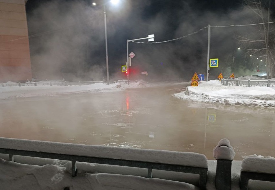 Аварию на улице Космической устраняла аварийная бригада МУП “Комбинат бытовых услуг”. Коммунальная авария на водоводе холодного водоснабжения 600 мм произошла ночью 28 января – в результате перекресток затопило водой.