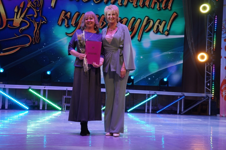 Председатель профсоюза работников культуры города Елена Степанова отметила, что благодаря труду ее коллег, культура горда Бердска становится ярче, богаче и многонациональнее. А также вручила Почетную грамоту Общероссийского профсоюза работников культуры руководителю любительского объединения МХШ ДК “Родина” Елене Пановой, заместителю директора ДК “Родина” Яне Саньковой, директору ДШИ “Берегиня” Татьяне Щетининой.