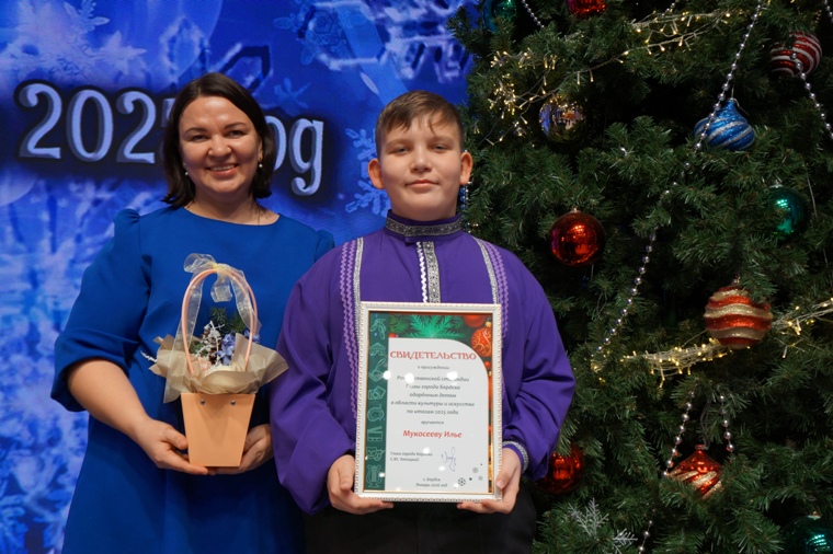 Во Дворце Культуры «Родина» по традиции состоялось торжественное событие — вручение Рождественской стипендии. Одним из стипендиатов стал воспитанник отделения «народные инструменты» БДМШ им. Г.В. Свиридова Илья Мукосеев.