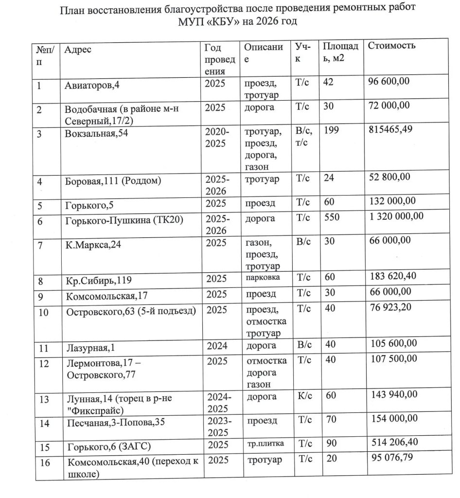 20 территорий приведут в порядок коммунальщики в Бердске после ремонтных работ. Сегодня МУП “Комбинат бытовых услуг” обнародован список, в котором перечислены все участки, где будет восстановлено благоустройство после разрытий.
