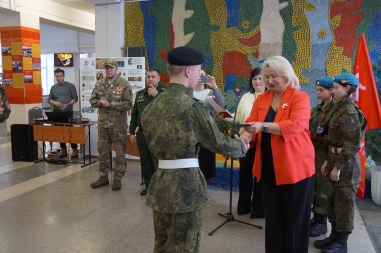 – Я благодарна вам за то, что вы даете такую высокую и ответственную клятву. И я уверена, что вы станете такими же патриотами, как все ребята, которые учились в Бердском политехническом колледже. Некоторые из вас уже побывали в поисковой экспедиции в составе отряда «Кондор-Vега». Желаю вам удачи, передаю слова благодарности вашим родителям за воспитание.