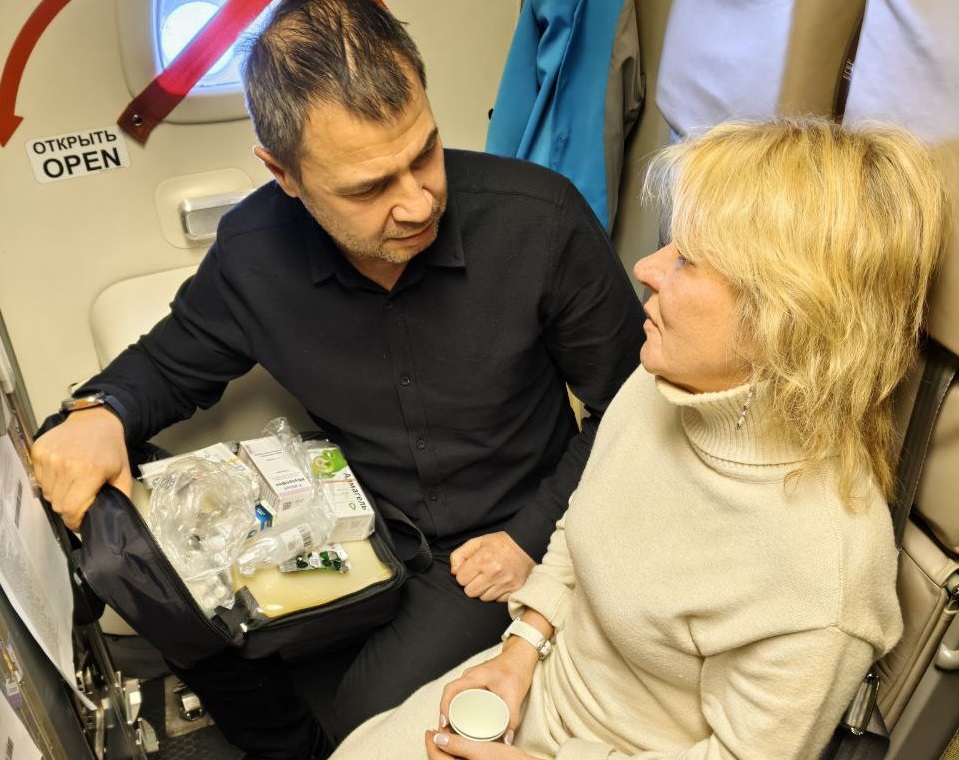 Министр здравоохранения региона Ростислав Заблоцкий оказал медпомощь женщине во время перелета. Об этой ситуации рассказали в телеграм-канале Ассоциации врачей авиационной медицины.