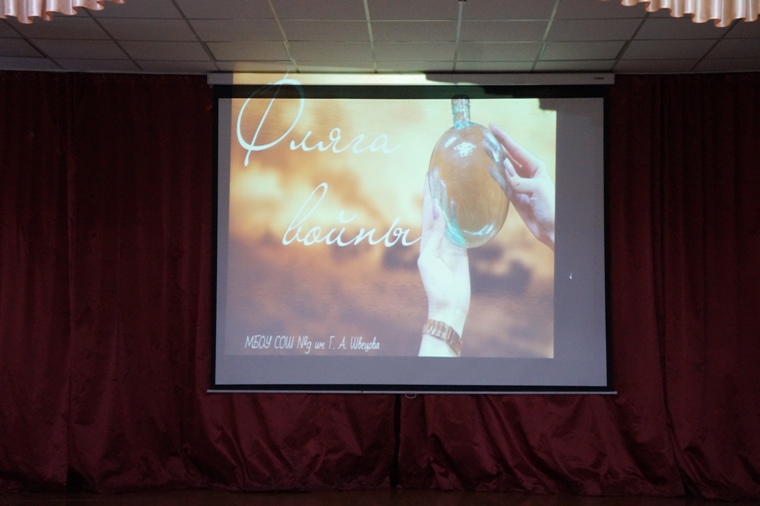 Ребята из школы №9 удивили участников и гостей фестиваля: всем известно, что в вещмешке бойца в годы Великой Отечественной войны, кроме оружия и сухпайка, непременно находилась фляжка. Оказывается, в годы войны у солдат и офицеров в быту были… стеклянные фляжки, рассказали школьники. Конечно, алюминиевые фляжки легче и прочнее стеклянных, но дороже в производстве. Поэтому с началом Великой Отечественной войны выпуск алюминиевых фляг был остановлен.