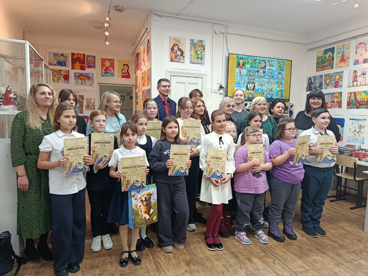 В качестве организатора выступает детская художественная школа “Весна”. Именно там собрались призеры и победители вместе с родителями и педагогами в прошлую пятницу. Прямо в актовом зале, где проводилась выставка рисунков, на которых изображены мамы участников конкурса.