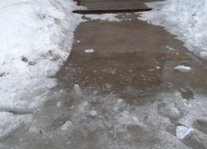 Жители дома №19 на микрорайоне рассказали о своей беде: у них у каждого подъезда от крыльца до тротуара образовалась огромная лужа, которая покрылась льдом; а по бокам снега навалили, когда чистили. Так что выйти вообще нельзя. Жители обратились в УК «Сибирский стандарт», и их заявку не оставили без ответа. Дворники сегодня утром очистили ото льда и воды проходы, и люди остались довольны.