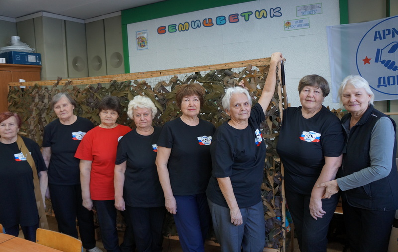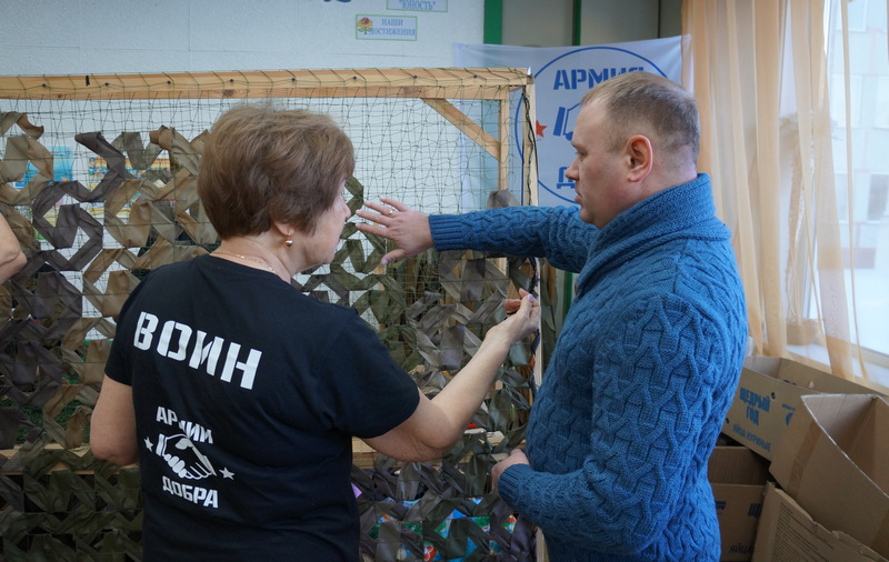 …Сегодня у мастериц особенный день: их навестил боец в отпуске. Участник СВО Роман осматривает работу волонтеров: «Отличное полотно!». Женщины ловят каждое слово военнослужащего. «Вам привозят наши сети?». «Конечно, с каждым грузом «Армии добра» нам доставляют сети из Бердска. Получаем и распределяем по всем подразделениям». «А какие цвета нужны?». «Все зависит от рельефа местности и погодных условий». Военнослужащий подчеркнул, что на сети за ленточкой всегда большой спрос.