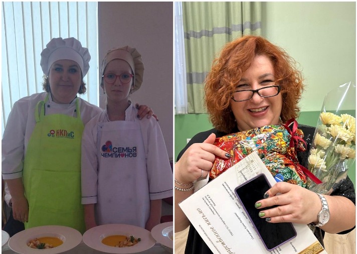– Я всегда старалась пробудить в студентах интерес к науке, воспитать творческую составляющую в будущей профессии. Заставить молодых людей нельзя, но можно вдохновить личным примером. Поэтому я сама участвовала в конкурсах и конференциях, потом стала студентов готовить. Так, мы со средней дочерью участвовали в областном кулинарном конкурсе «Семья чемпионов», который проходил в НПЭК, в компетенции поварское дело. По условиям конкурса, участникам давался набор продуктов, и нужно было придумать, что ты из него приготовишь. Мы придумали: сделали полезный гамбургер. Подошли к задаче творчески: приготовили из поленты булочки, из филе рыбы сделали котлетку, из яйца с петрушкой выпекли лист салата, приготовили соус. Картошку пожарили, из сыра сделали конвертик и вложили в него картошку фри. В итоге мы были единственной командой, которой поставили высший балл за оформление блюда. Это был очень интересный опыт, который показал мне, какой стресс испытывают студенты, когда участвуют в конкурсах профмастерства. Казалось бы, они все отрабатывают в колледже, приди и покажи. Но я помню, как начался отсчет времени, и я стою в растерянности, не знаю, с чего начать. И тут дочь мне говорит: «Мам, ты что стоишь, давай я начну картошку чистить». И тогда уже заработал мозг, и дело пошло.