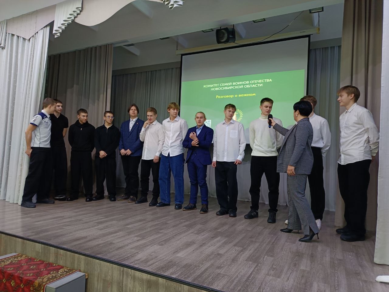 Как сообщили в группе КСВО НСО, председатель регионального Комитета семей воинов Отечества Наталия Курина, обращаясь к ребятам, отметила, что СВО коснулась практически каждого.
