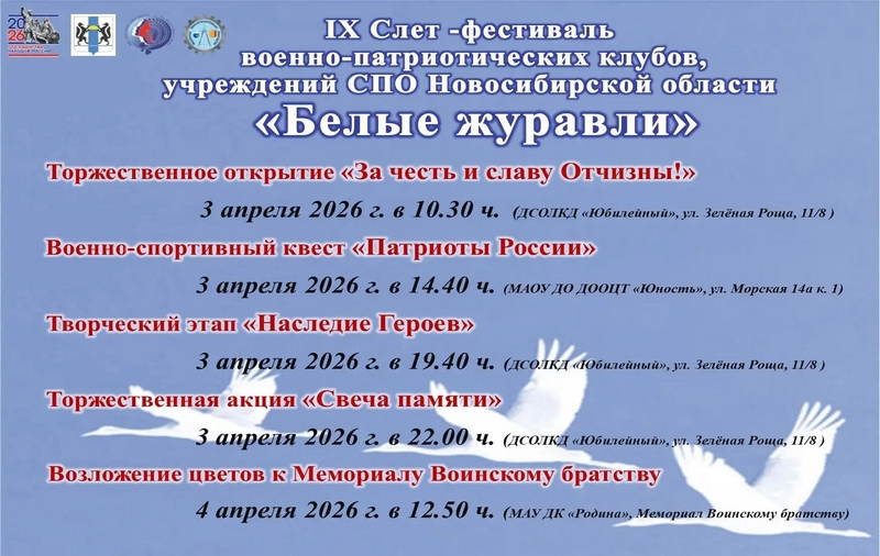 Фестиваль «Белые журавли» посвящен памяти выпускников колледжей, погибших при исполнении воинского долга в локальных военных конфликтах. Организаторами слета традиционно являются Союз Женщин города Бердска и Бердский политехнический колледж.