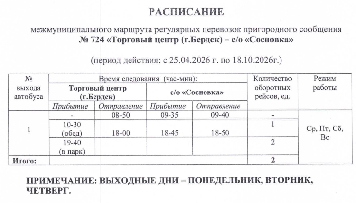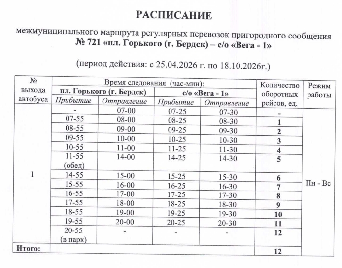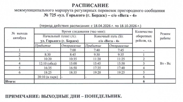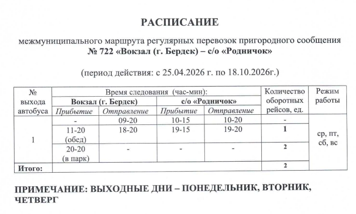 25 апреля к работе подключатся ещё шесть дачных маршрутов, в том числе и направления для дачников Бердска: до с/о «Вега 1», «Родничок», «Сосновка».