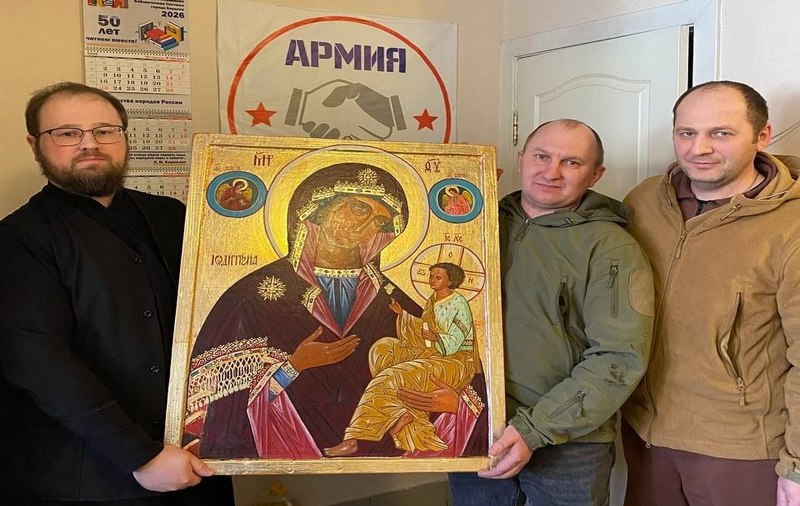 Представители духовенства передали волонтерам Икону Божией Матери Одигитрия (Путеводительница), сообщили в телеграм-канале «Армия добра».