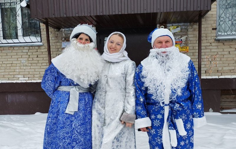 «Армия добра» благодарит бердчан, которые перевоплотились в главных новогодних персонажей. В Снегурочек переоделись: Наталья – жена Андрея Степанова; Елена – жена Андрея Кардаш; Ирина – жена Алексея Лябина; Ольга – жена Ивана Дитрих. Дедами Морозами стали Татьяна – жена Евгения Кравчука; Анна – сестра Семена Данько; Евгений Овчинников, Александр Обрывко, Дмитрий Титов.