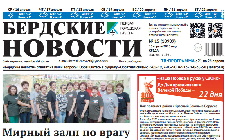 16 апреля вышел в свет свежий выпуск “Бердских новостей”. В этот номере вы найдете множество интересных публикаций, которые рассказывают про происходящие в нашем городе события и бердчан.
